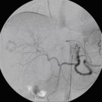 Superselektive transarterielle Chemoembolisation (TACE) mit Sondierung eines tumorversorgenden Gefäßes 1